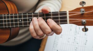 ウクレレが初心者にも優しい理由の一つは、簡単なコード(和音)が多い点にあります。最初は、少ないコードだけで弾けるシンプルな曲から練習を始めるのが、上達への一番の近道です。