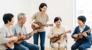 ウクレレの演奏は、シニア世代の健康維持と心の充実の両面において、良い影響を与えることが期待できます。