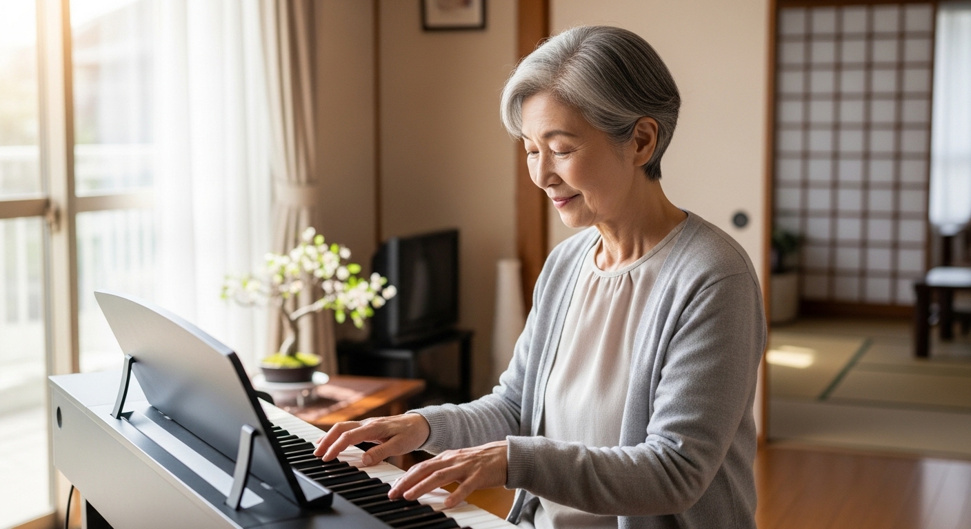 よく「ピアノは指先を細かく使うから健康に良い」と聞きますが、具体的に高齢者がピアノを始めると、私たちの心や身体にどんな効果が期待できるんでしょうか。私もとても気になって、少し調べてみたんです。