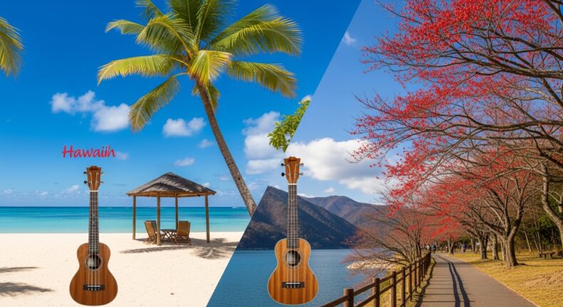 ウクレレといえば、やっぱり本場「ハワイ」を思い浮かべますよね。カマカやコアロハといった有名ブランドは、まさに王道です。では、その「ハワイ産」と「国産」はどう違うのでしょうか。これは優劣ではなく、「個性」と「環境適応力」の違いと捉えるのが良さそうです。