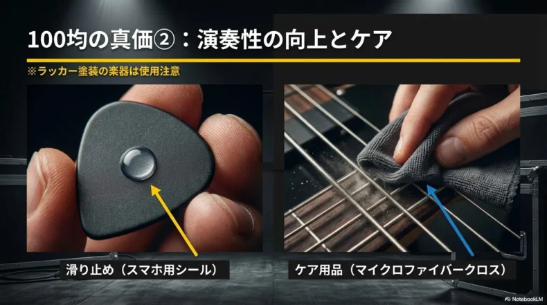ライブの後半、手汗でピックが滑ってしまい、重要なソロパートで落としそうになったことはありませんか?私はベースを激しく弾く際、指が滑るのを防ぐために、100均の「あるアイテム」を愛用しています。