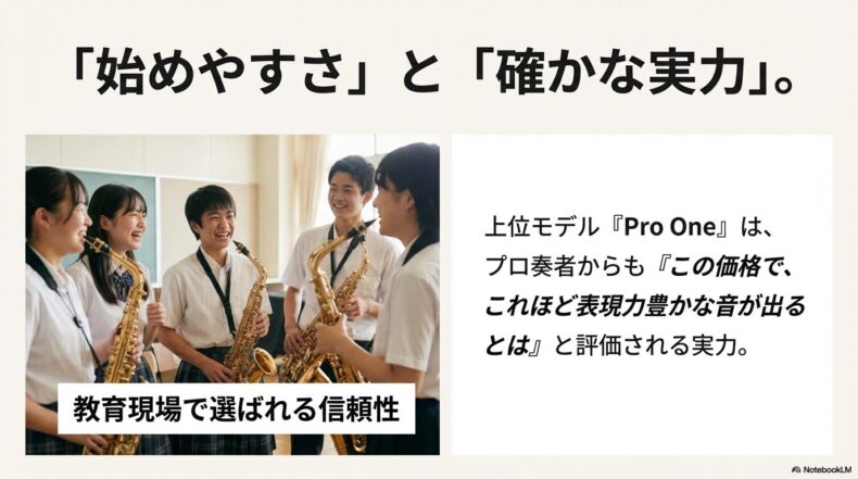 私自身、初めてアンティグアを試聴した際、その「これぞサックス!」というキラキラした音に驚きました。この明るい音色は、特に大人数での吹奏楽や、マイクを通すポップス、ジャズのコンボ演奏において、自分の音がはっきりと聴こえるというメリットがあります。初心者でも「自分の音に自信が持てる」ような鳴りの良さは、このブランドの大きな武器ですね。