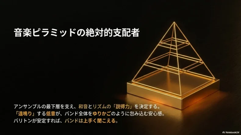 どんなに華やかなメロディが上で鳴っていても、バリトンの出す低音がコードの基盤をしっかりと定義しなければ、音楽はどこか芯のないものになってしまいます。