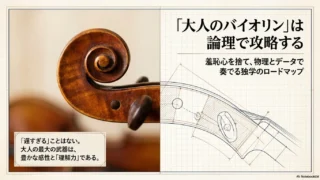 バイオリン教室に通うのが恥ずかしいと感じる大人向けに、独学で挫折せずに上達するための論理的なステップ、騒音対策、サイレントバイオリンの活用術、おすすめ教材の選び方を徹底解説。50代からのスタートでも無理なく楽しめる戦略を伝授します。