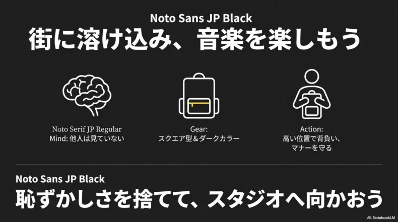 しかし、せっかく音楽という素晴らしい趣味に出会えたのですから、単に「隠れるように」持ち運ぶのではなく、楽器を持つこと自体にポジティブな自信を持っていただきたいと私は考えています。ここからはさらに一歩進んで、持ち運びの悩みを根本から解決し、快適でスタイリッシュな音楽ライフを送るための実践的な方法を解説していきます。