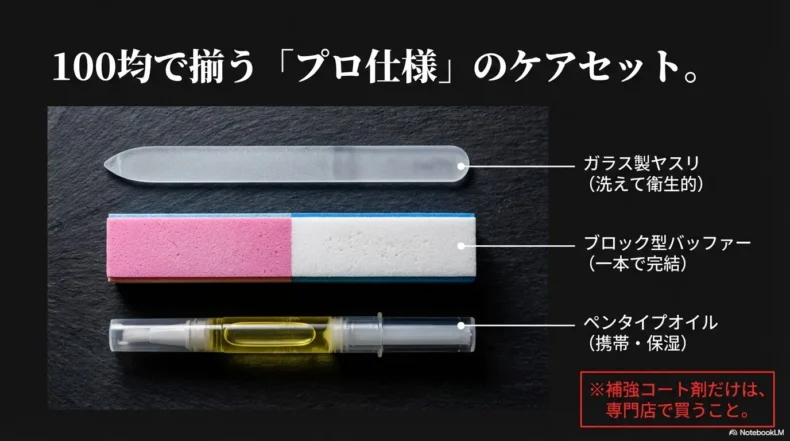 • 100均のガラスヤスリとオイルでも十分プロ並みのケアが可能