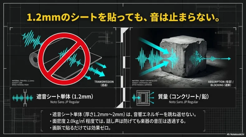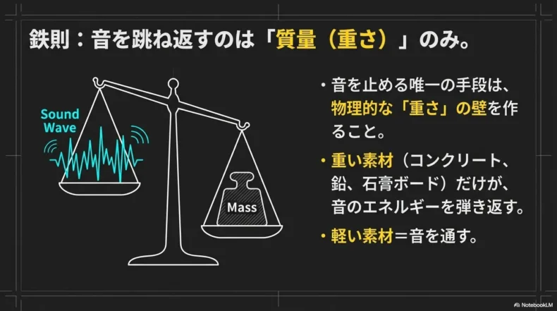 ・遮音の基本は「物理的な質量(重さ)」と「隙間ゼロ」の徹底。
