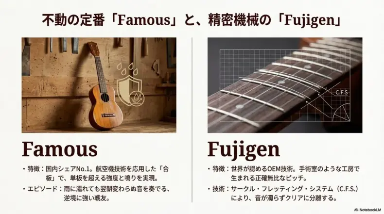 - 「Famous」や「Fujigen」など、主要5ブランドの音色、ネックの握り、製造の裏側を徹底解剖します