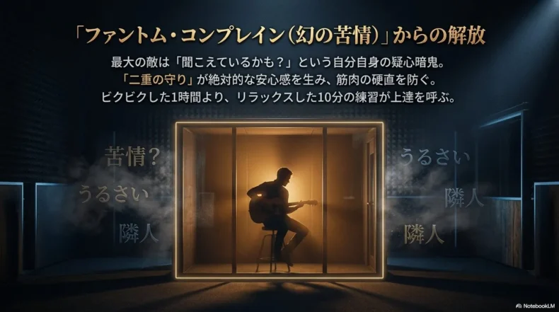 楽器練習における最大の敵は、実は近隣住民ではありません。「聞こえているかもしれない」という、自分自身の疑心暗鬼です。