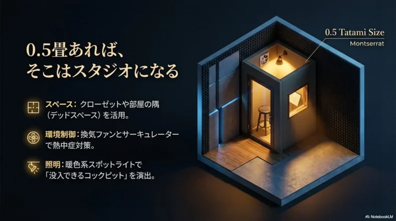 最後に、この「最強セット」を導入し、自宅をスタジオ化するための具体的な空間作りのコツをシェアします。