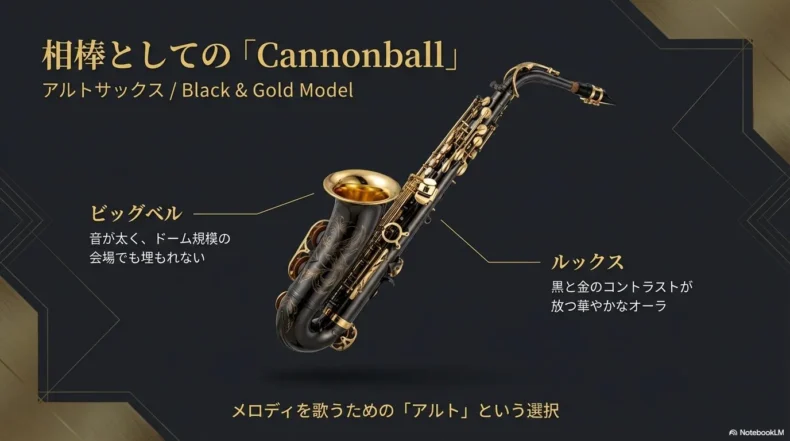 コンサートでの目撃情報や、過去の音楽誌に掲載された機材情報などを総合すると、彼はアメリカの有名な管楽器ブランドである「キャノンボール(Cannonball)」のアルトサックスを使用していることで広く知られています。