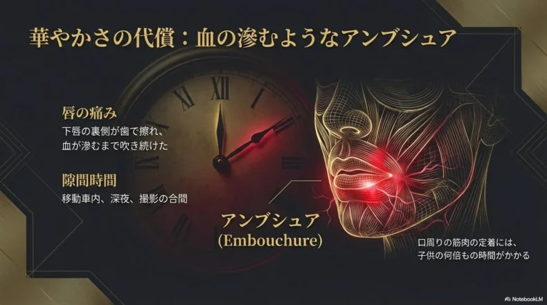 しかし、弦楽器の指先の痛みと、管楽器の「唇の痛み」は次元が全く異なります。