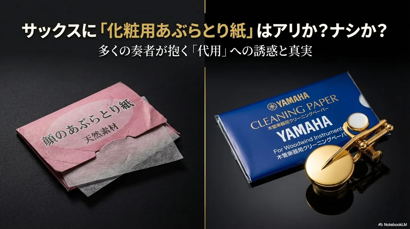 この記事では、Webマーケターとして論理的に「コストとリスク」を分析する視点と、一人の音楽ファンとして「楽器を大切にしたい」と願う視点の両方から、サックスの「あぶらとり紙(クリーニングペーパー)」の真実について徹底的に深掘りします。なぜ専用品が必要なのか、どう使えば楽器が長持ちするのか。私の周りのプロ奏者やリペアマンの「現場の声」を交えて、どこよりも詳しく、そして正直にお伝えします。