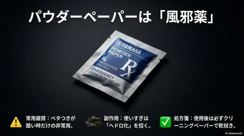 選び方:ヤマハ、ギャラックスなどの専用品。 - 2. パウダーペーパー(非常用・常備薬)