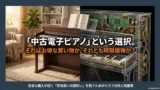 ここで一つ、楽器選びの重要なアドバイスをさせてください。初心者の方がよく混同されるのですが、「電子ピアノ」と「キーボード(卓上の軽い鍵盤)」は、似て非なるものです。