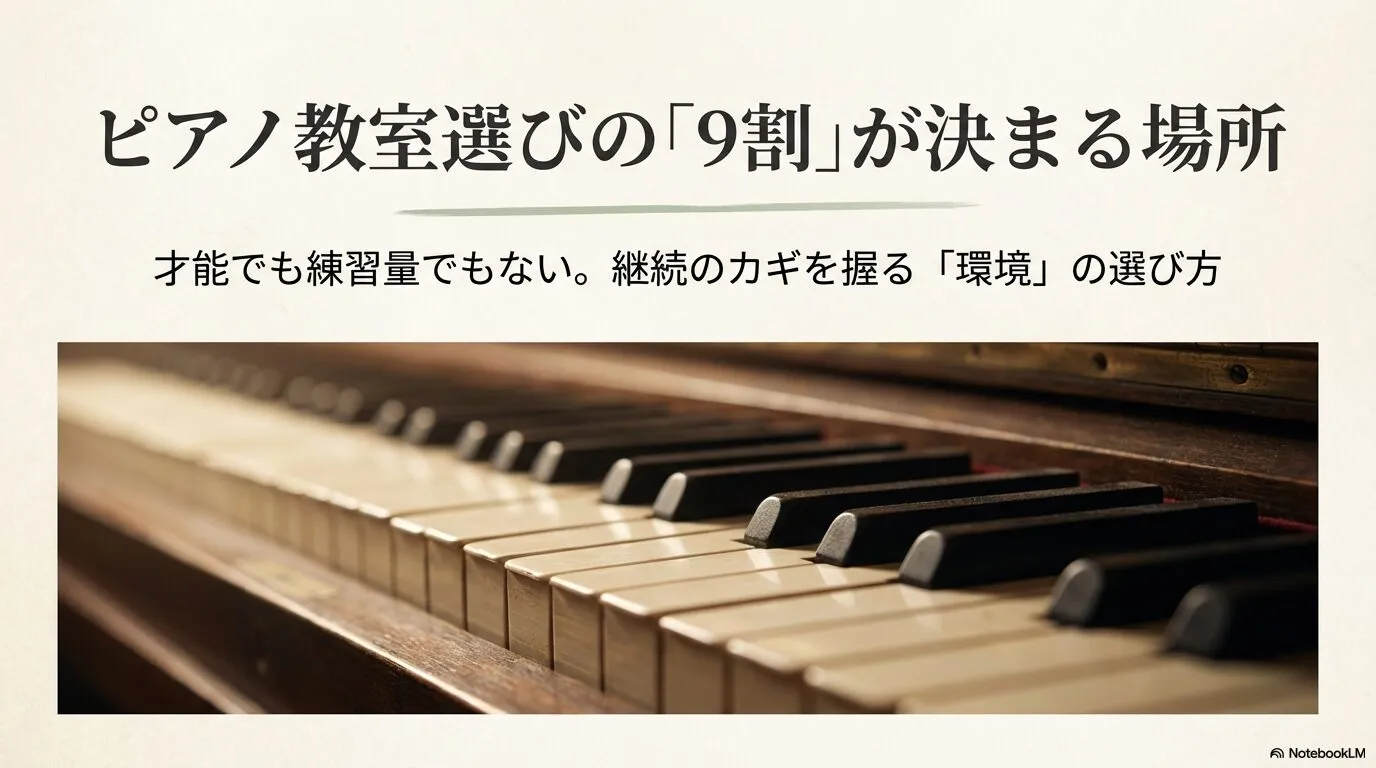 ピアノ教室を選ぶ際、多くの人が「月謝」や「場所」といった目に見えやすい条件だけで決めてしまいがちです。もちろん、それらも大切ですが、長く続けるためにはもっと本質的な「失敗しないための基準」が存在します。
