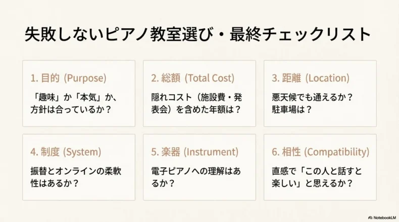 🎹 失敗しないピアノ教室選び・最終チェックリスト