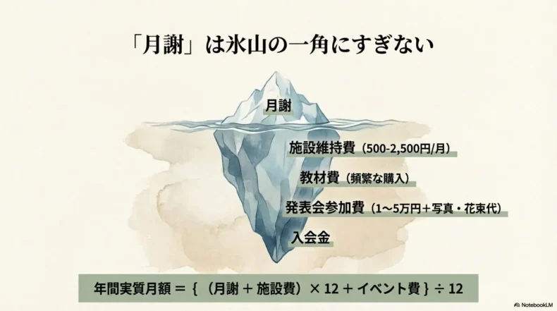 ホームページや看板に大きく書かれている「月謝」は、あくまで支払う金額の「一部」でしかないことが多いのです。長く続けるためには、無理のない経済計画が不可欠です。ここでは、入会してから「えっ、こんなにお金がかかるの?話が違う!」と驚かないために、必ず確認すべき「隠れコスト」について洗いざらいお話しします。電卓の準備はいいですか?