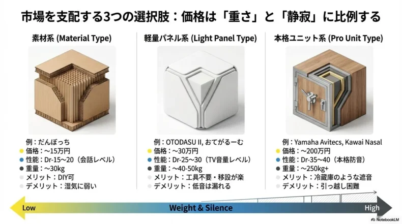 - 選び方の正解:賃貸なら「軽量パネル系(OTODASU等)」、ピアノ・金管なら「本格ユニット(ヤマハ等)」一択。