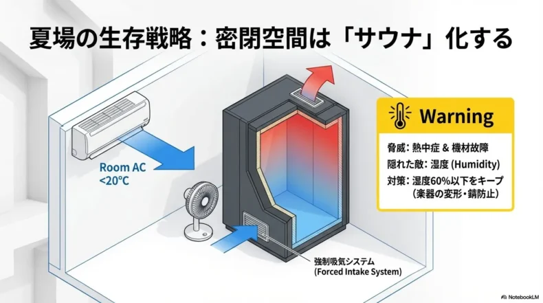 - 夏場の生存戦略:密閉空間はサウナ化する。エアコン冷気の強制吸気システムと、湿度管理が楽器と身体を守るカギ。