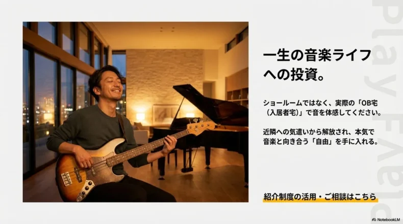 「自宅で思いっきりベースのアンプを鳴らしたい」「グランドピアノを時間を気にせず弾きたい」。これは私たち楽器プレイヤーにとって、人生最大の夢の一つであり、同時に最大の悩みでもあります。スタジオに行けばいい、そう頭では分かっていても、仕事から帰ってきてふと浮かんだフレーズをその場で弾けないもどかしさは、言葉では言い表せないストレスですよね。スタジオの予約サイトを見て空きがなく、ため息をついた経験は一度や二度ではないはずです。