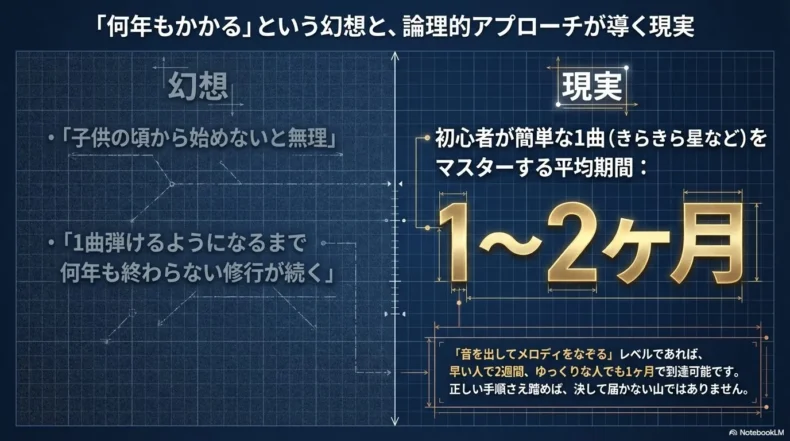 結論を再確認すると、平均して1ヶ月から2ヶ月、正しい環境と練習法を選べば、あなたは「きらきら星」を堂々と奏でることができます。