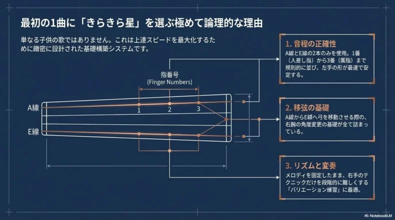 バイオリンにおいて「きらきら星」を最初の1曲に選ぶことは、単なる慣習ではありません。