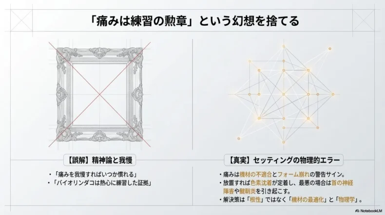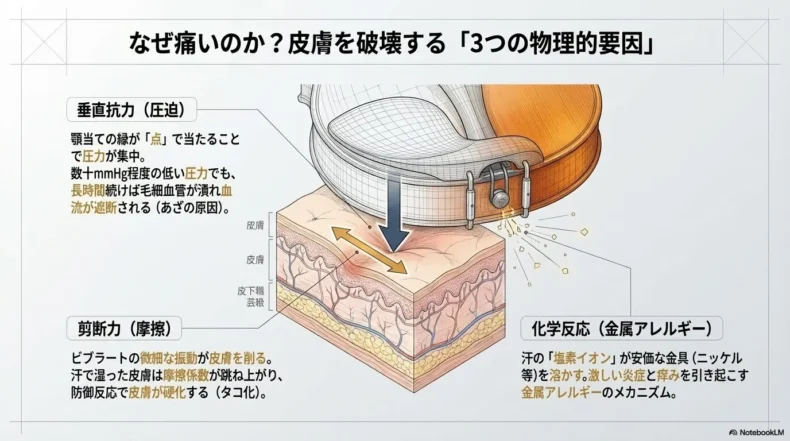 バイオリンを弾くと痛いのか。その理由を感覚ではなく「物理学」として分解して理解することで、対策の精度は飛躍的に高まります。