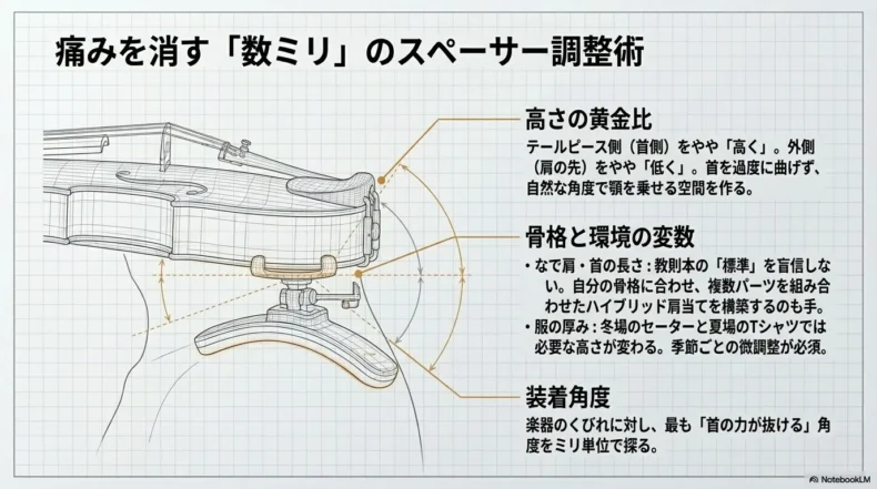 - 自分の骨格に合わせて「肩当て」と「顎当て」を最適化する具体的調整術
