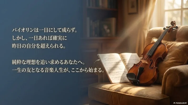 この記事を最後まで読んでくださったあなたは、すでにその戦略の種を手に入れています。あとは、それを自分の生活に合わせて少しずつ育てていくだけです。バイオリンの音色は、あなたの人生の深みそのものを映し出す鏡になります。