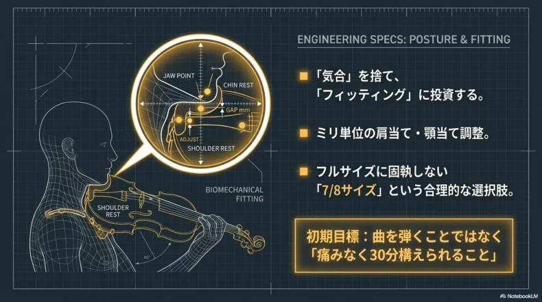 - 挫折の正体: バイオリン特有の「音程の不可視性」と「左右非対称の運動」による初期負荷が原因。