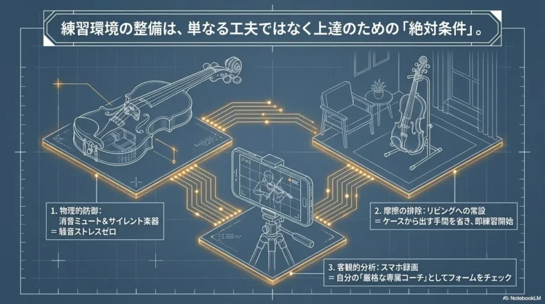 ここまでは、技術的な「できない理由」にフォーカスしてきました。しかし、楽器を継続できるかどうかは、最終的には「生活の中にどうバイオリンを組み込むか」という戦略にかかっています。