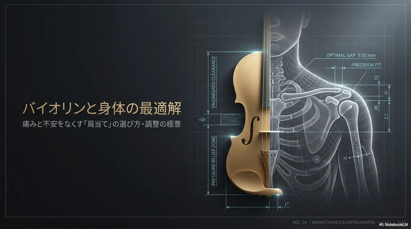 肩当ては単なるクッションではなく、楽器を体に固定するためのブリッジという考え方が、効率的な上達には不可欠です。ピアノを弾く際も椅子の高さが1cm違うだけで打鍵のコントロールが変わるのと同様に、空中で保持するバイオリンにとって、肩当てはまさに「演奏フォームの土台」そのものなのです。