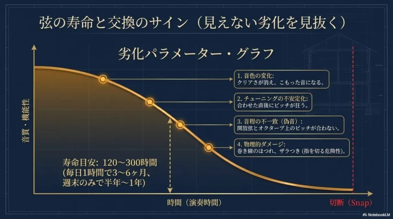もどかしさ:「あと一週間だけ……」と粘っているうちに本番中に弦が切れる。これは奏者にとって最大の悪夢であり、最も避けたい非効率な事態ですね。